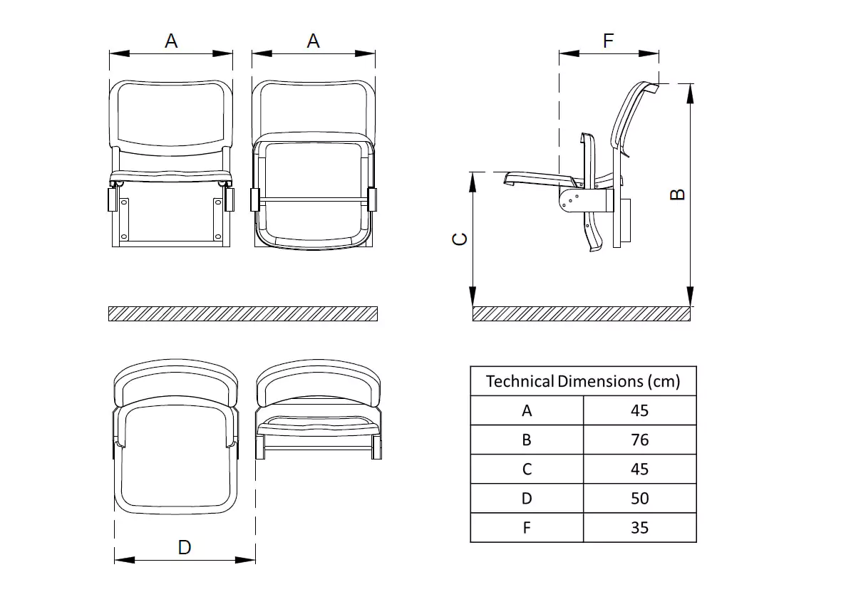 Azurith Foldable 02: The perfect blend of form and function. These stadium seats are designed for maximum comfort and space efficiency. With a foldable design, they offer easy storage and flexible seating arrangements. Crafted with durability in mind, these seats are built to withstand the rigors of any event.